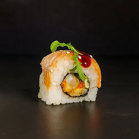 Ролл Никкей с креветкой темпура и лососем татаки
